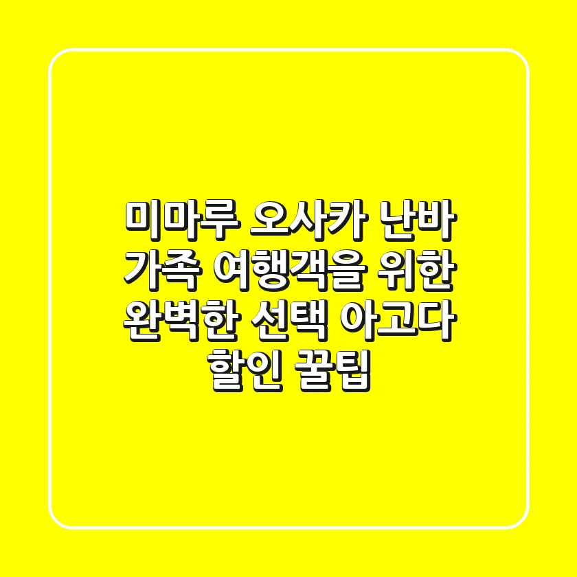 안녕하세요, 여행을 사랑하는 여러분! 특히 아이들과 함께하는 오사카 가족 여행을 계획 중이신가요? 👨👩👧👦 짐도 많고, 아이들 챙기랴, 숙소까지 불편하면 정말 🤯… 솔직히 저도 예전에 아이들과 여행 갔을 때 숙소 때문에 고생한 적이 있어서 얼마나 중요한지 뼈저리게 느끼고 있답니다. 그래서 오늘은 오사카 난바에서 가족 여행객들에게 ‘극. 락.’을 선사할 아파트형 호텔, 바로 “미마루 오사카 난바 스테이션”에 대한 모든 것을 파헤쳐 볼까 해요. ✨ 이 숙소, 진짜 장점 한두 개가 아니거든요! 넓은 객실은 기본, 주방 시설 완비, 아이들을 위한 보드게임까지! 🧸 게다가 아고다 할인코드 꿀팁까지 챙겨서 합리적인 가격으로 예약하는 방법, 제가 지금부터 낱낱이 알려드릴게요! 😉